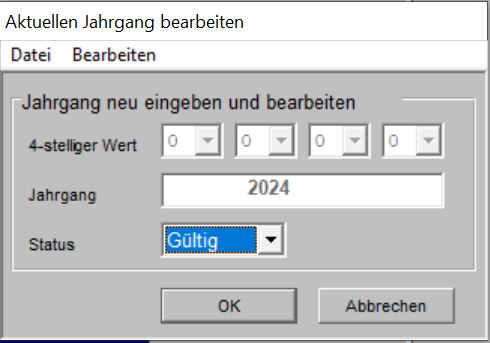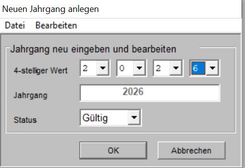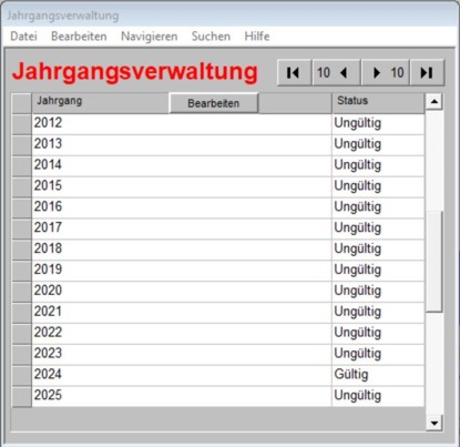Hauptmenü -> Buchführung -> Jahrgangsverwaltung