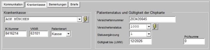[Abb. 1406-03]: Patientenkartei Registerkarte [Krankenkasse]