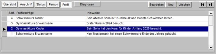 In der Registerkarte [Profil] können Sie sämtliche Kurse verwalten, Produkte anbieten und Leistungen offerieren, die es sonst noch gibt.