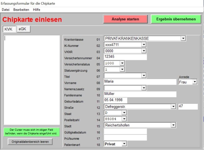 PraxiFix liest diese Daten ein und befüllt die unten abgebildeten Felder.