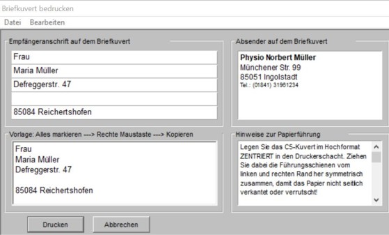 [Abb. 1406-11]: Aus der Patientenkartei heraus Briefkuverts C5 und DIN lang bedrucken]